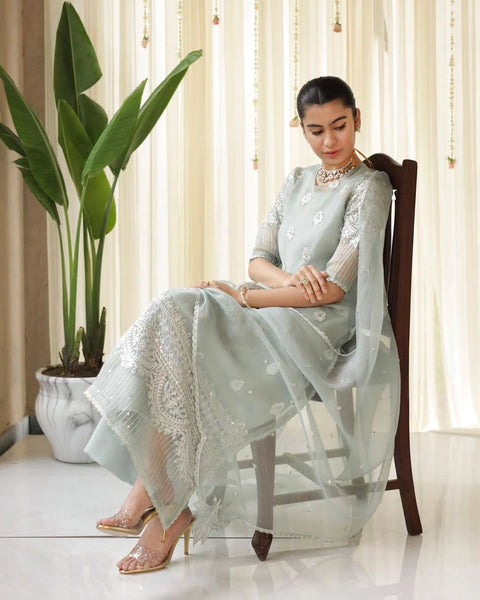 shine bright like a diamond In this gorgeous attire ✨Article name: Dynamite 2Colors: olive and plumarticle description : Organza Shirt Embellishment Work with DiamondsInbox us whatspp : +971554244066