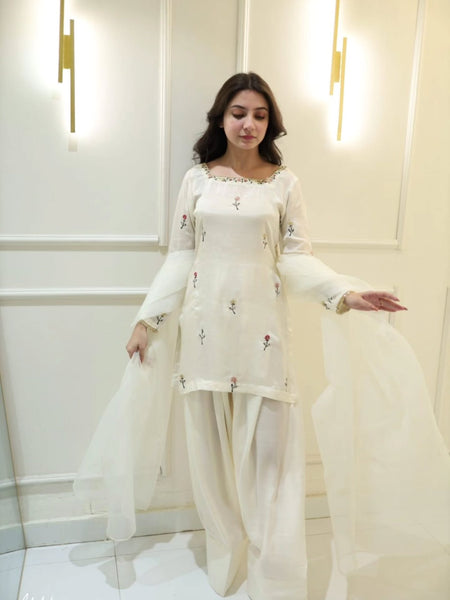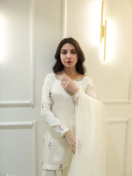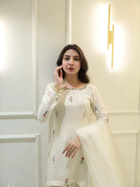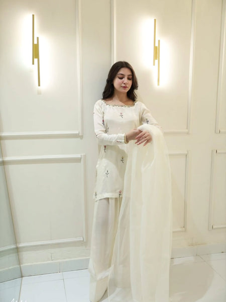 The outfit includes a beautifully designed raw silk shirt, a matching trouser, and a coordinating dupatta that completes the sophisticated look. Ideal for weddings, parties, and special events, this premium raw silk dress reflects timeless elegance, class, and superior craftsmanship ✨